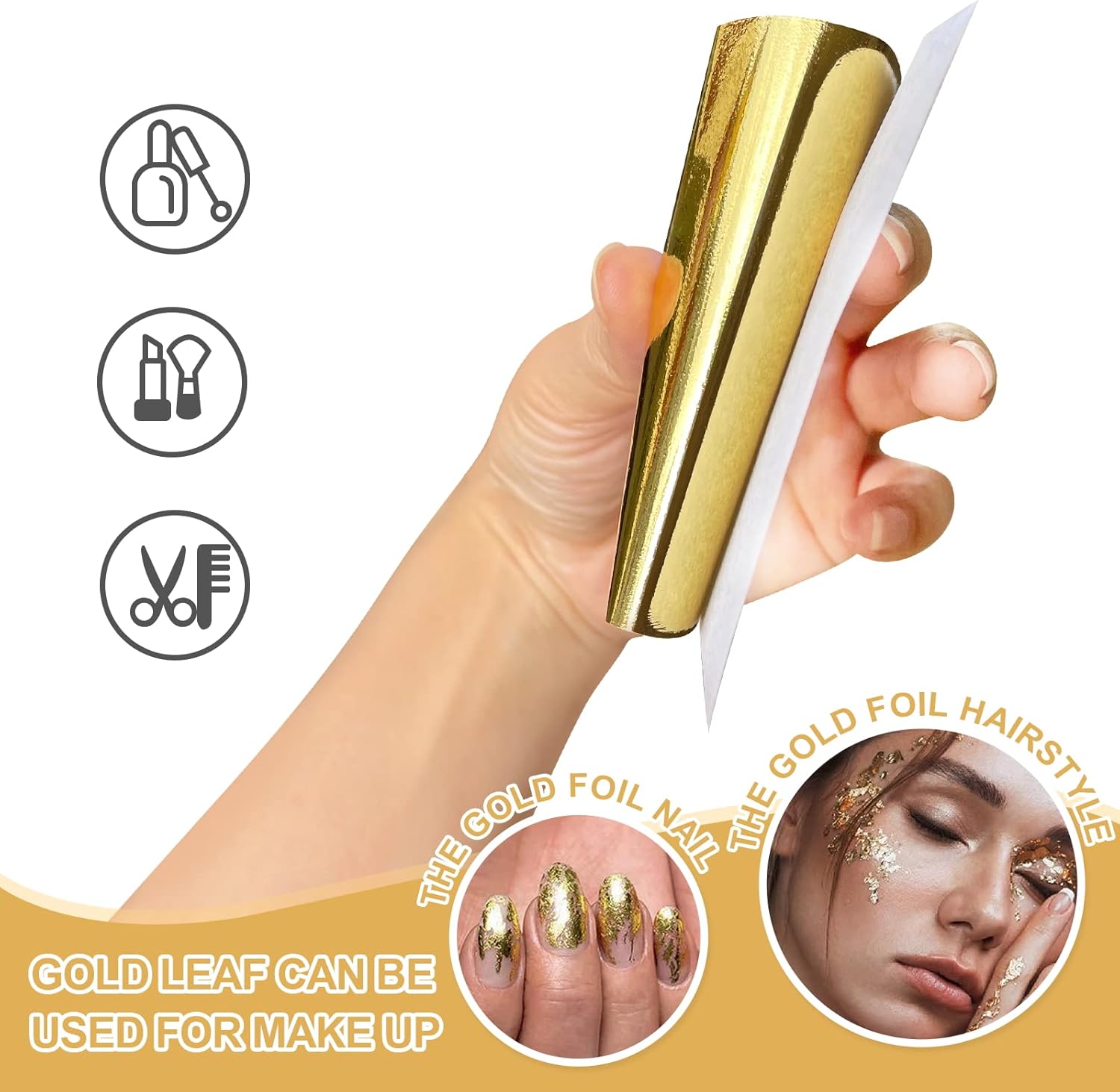 - Applications - The gold foil leaf is suitable for gilded statues paintings, nail art, art projects, resin projects, ceramics, walls, gilding crafting, decoration, furniture, picture frames, interior design and artistic work.