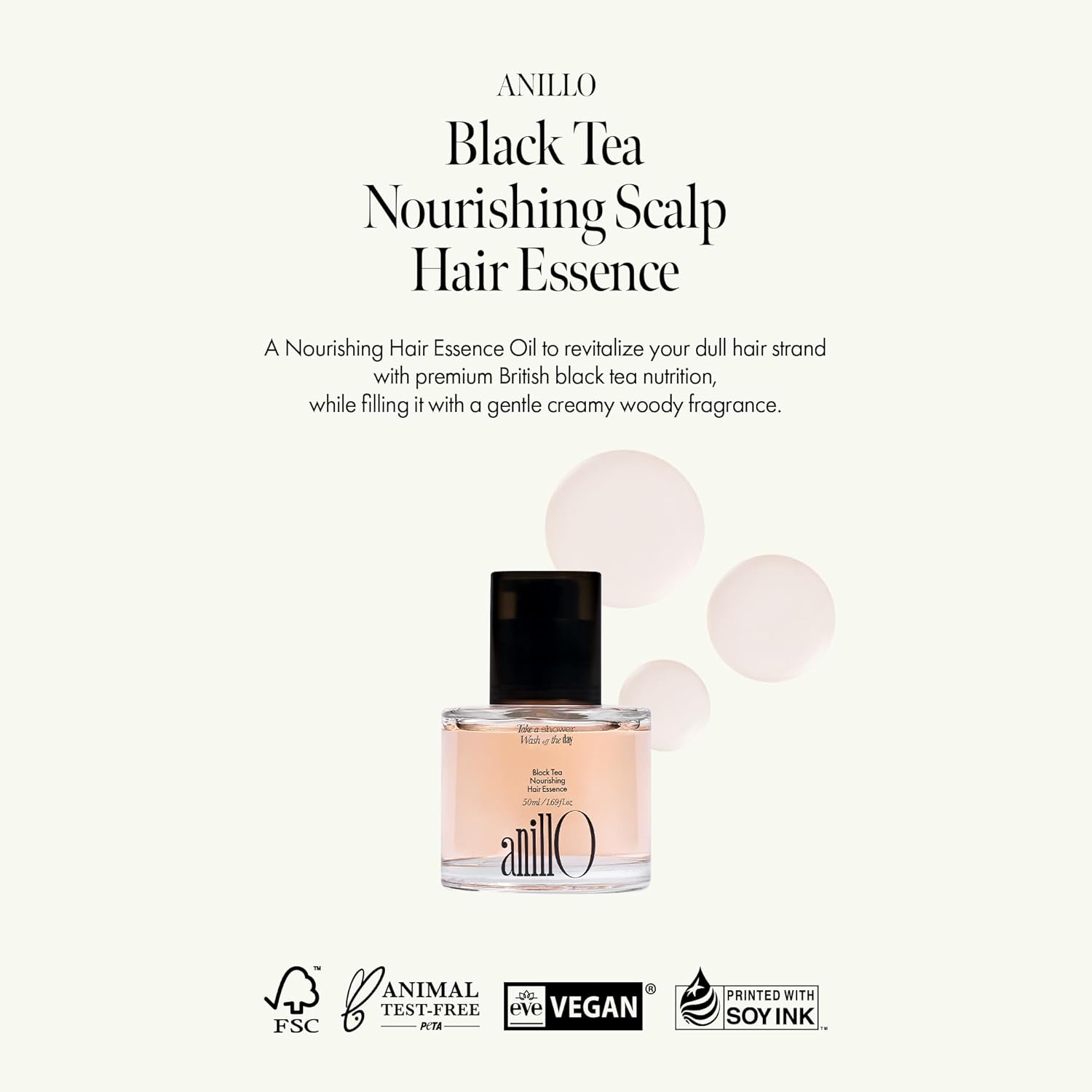 Black Tea Nourishing Hair Essence with Green Tea, Protein & Biotin for Nourishment and Shine, Creamy Woody Scent, Paraben-Free (50ml / 1.69 fl. Oz)