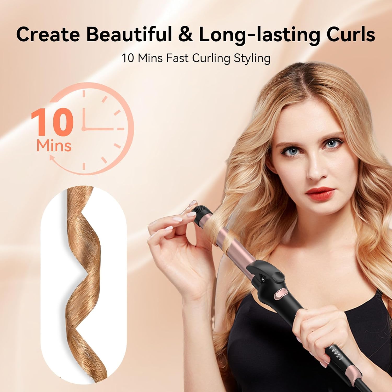 - Adjustable Heat Settings -- The 360° rotating curling wand features 30-second rapid heating technology and offers 5 temperature settings ranging from 284°F (140°C) to 420°F (220°C), allowing you to select the optimal temperature for your hair type and style—whether fine or thick