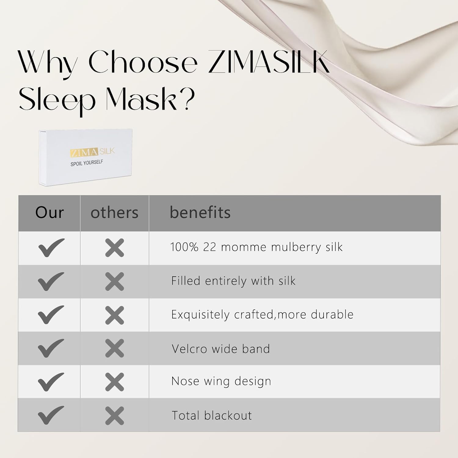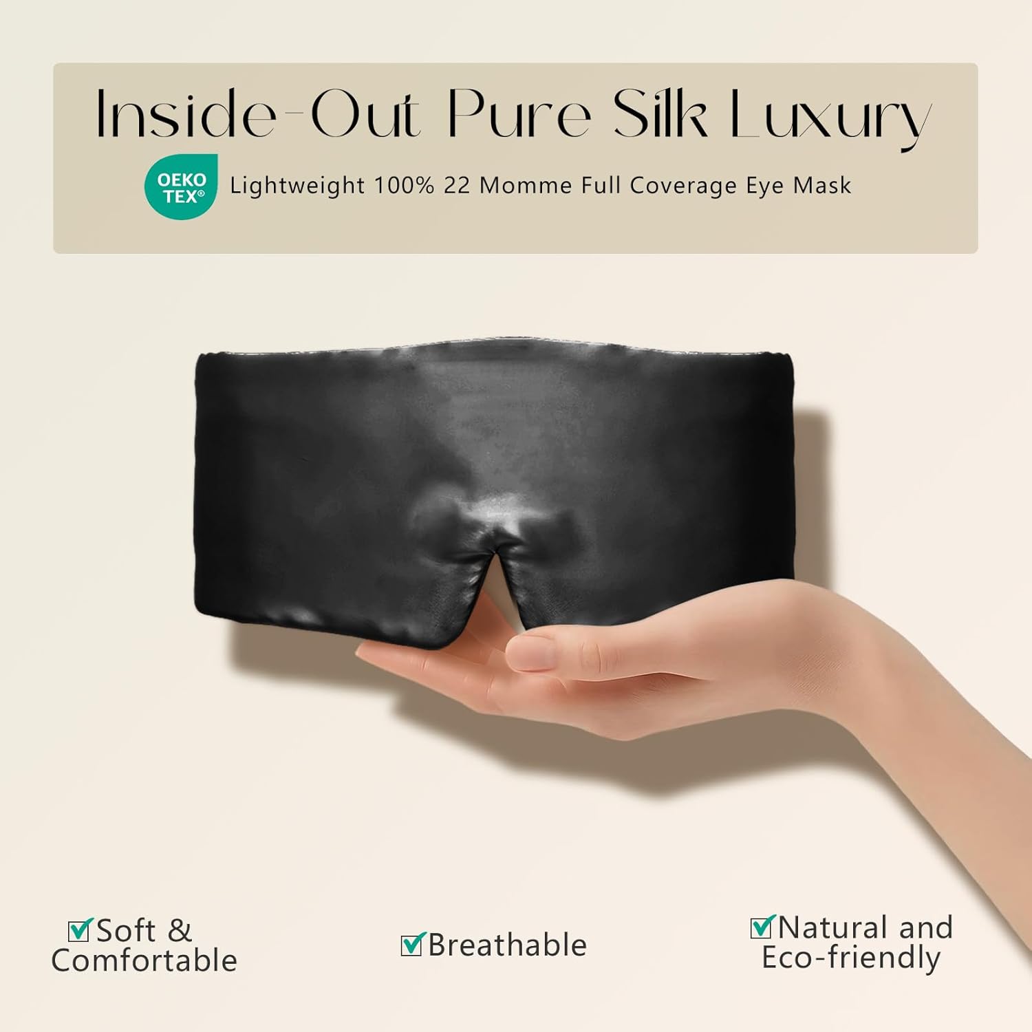 ZIMASILK 100% 22 Momme Mulberry Silk Sleep Mask - Full Silk Filled, Ultra-Soft & Breathable, Face-Hugging Blackout Eye Cover for Sleeping (Black)