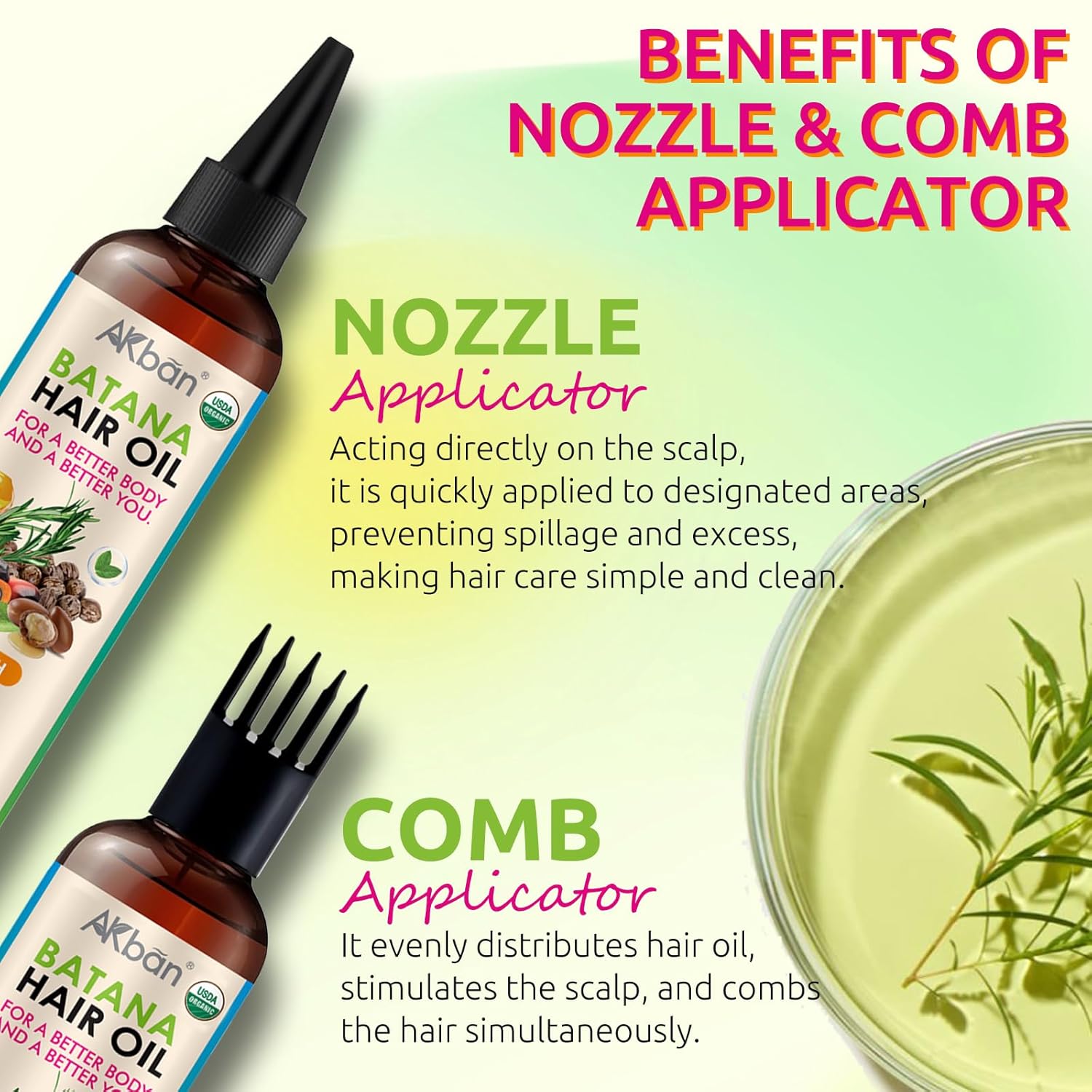 - DRIP TIP & COMB APPLICATOR — This Batana Rosemary Blend Hair Growth Oil can revitalize your hair. The drip tip and comb applicator make the application process more convenient.