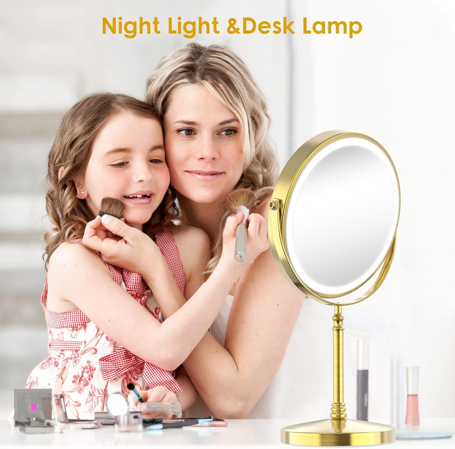 - 10X Magnifying Double Side High Definition: 1X/10X magnification, classic dual-sided design makes this led makeup mirror much more easier to get a flawless makeup look. Both sides effect not only for makeup, but also for face details like wearing contact lenses, trimming eyebrows, shaving, hair styling, facial treatments or applying mascara. Warm Tips: When using a 10x magnifying glass, please keep your face 6 inches away from the mirror to avoid dizziness.