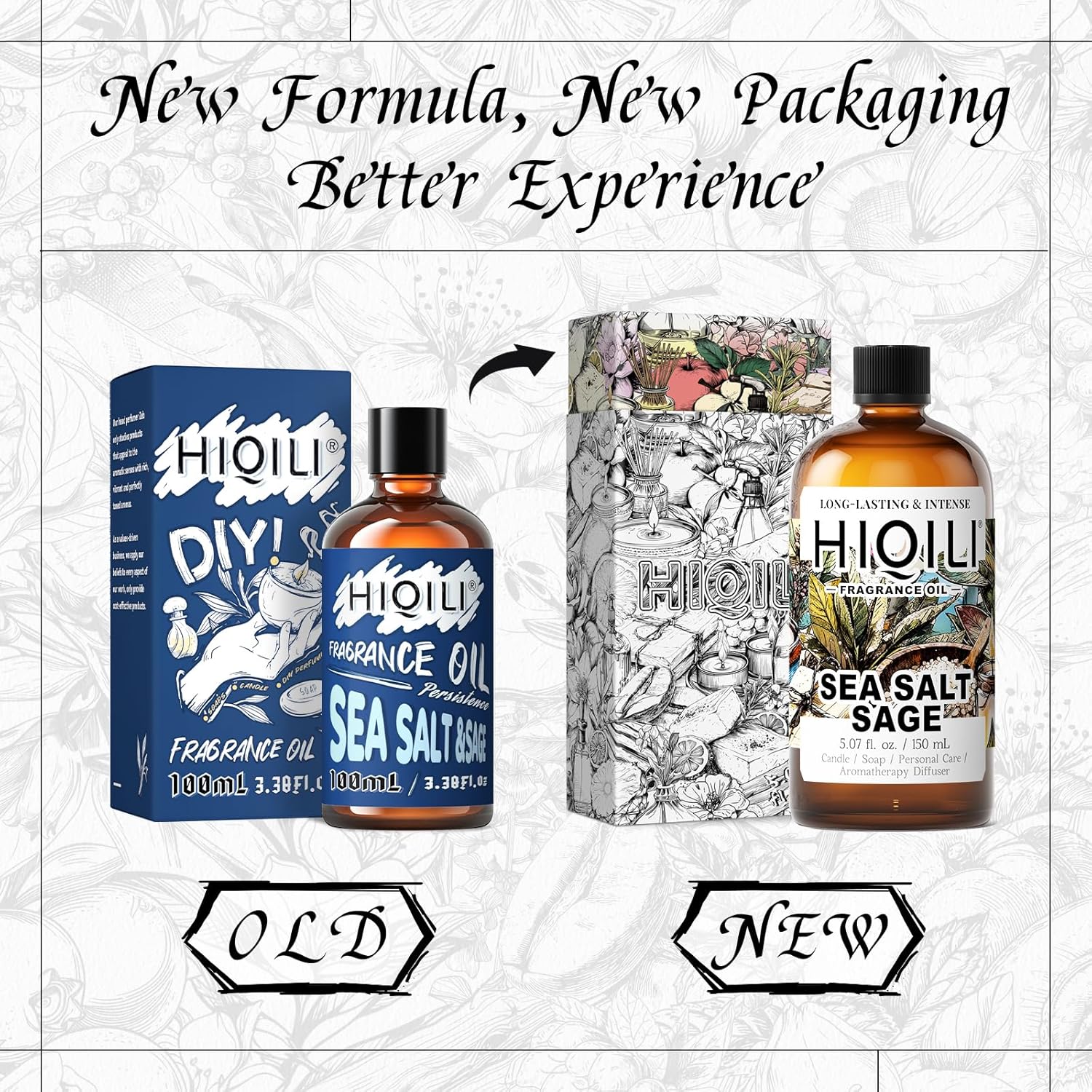 HIQILI Sea Salt Sage Fragrance Oil for Diffuser Use, Candle Making Scents, Soap Making Supplies, Car/Hotel Collection Diffuser Oil - 5.07 Fl Oz