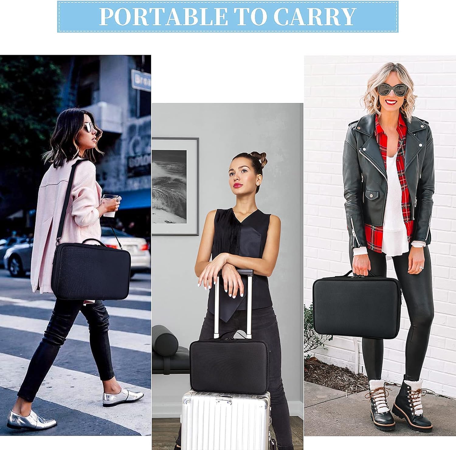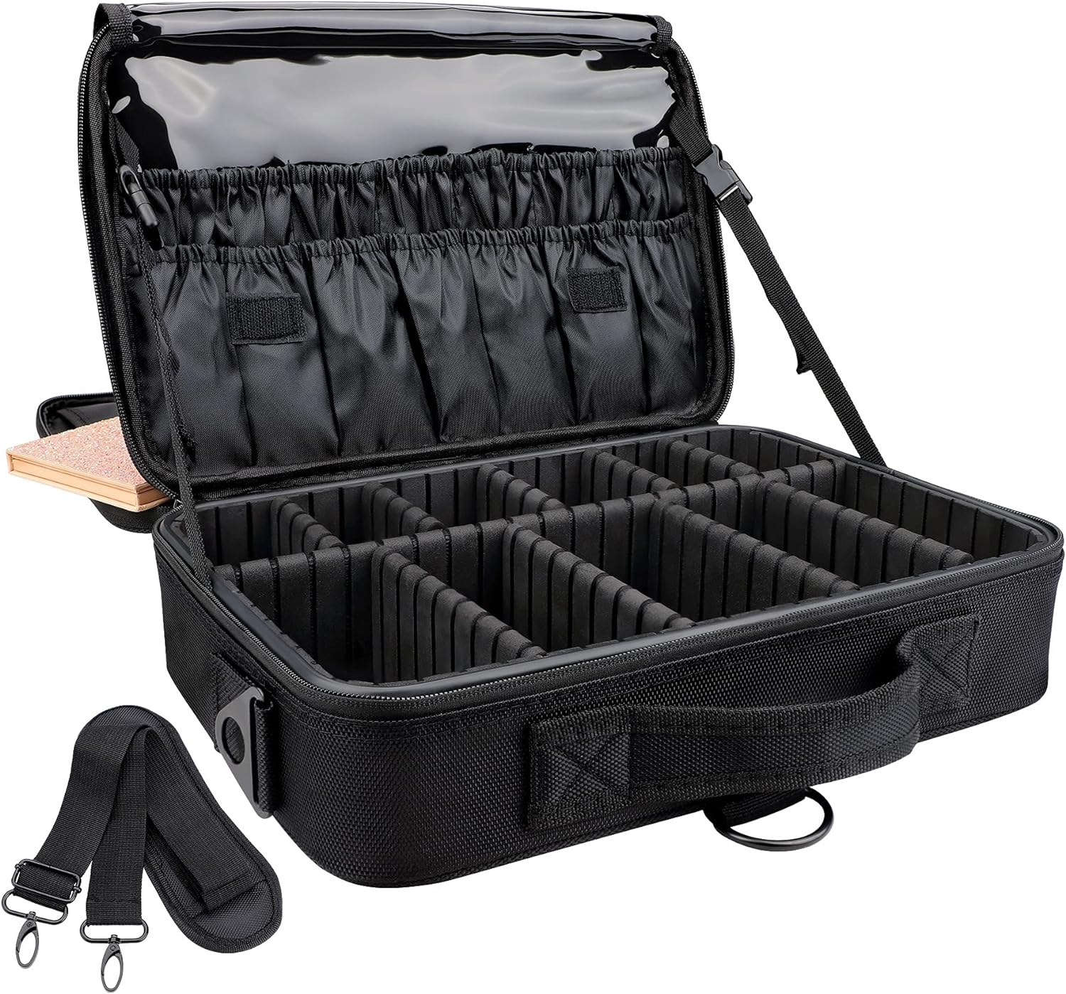 - Adjustable Shoulder Strap: Professional makeup bag with a shoulder strap can release your hands or attach to your trunk, portable carry handle for easy lifting or hanging.
