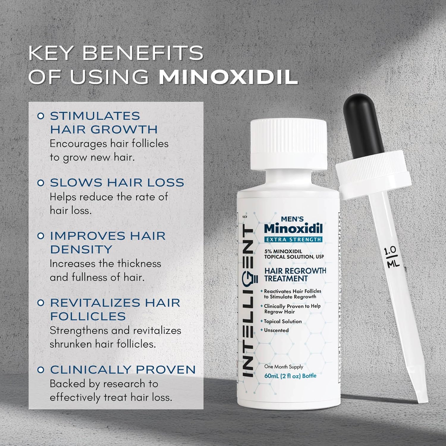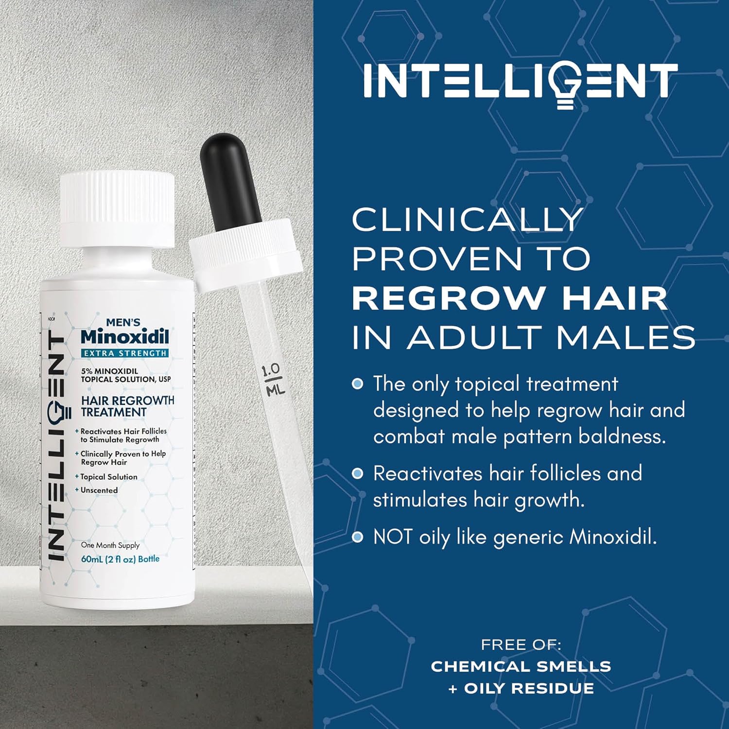 Intelligent Minoxidil | Fast-Drying, No-Grease | Extra Strength 5% Topical Hair Regrowth Treatment For Men | 2 fl oz (60 ml)