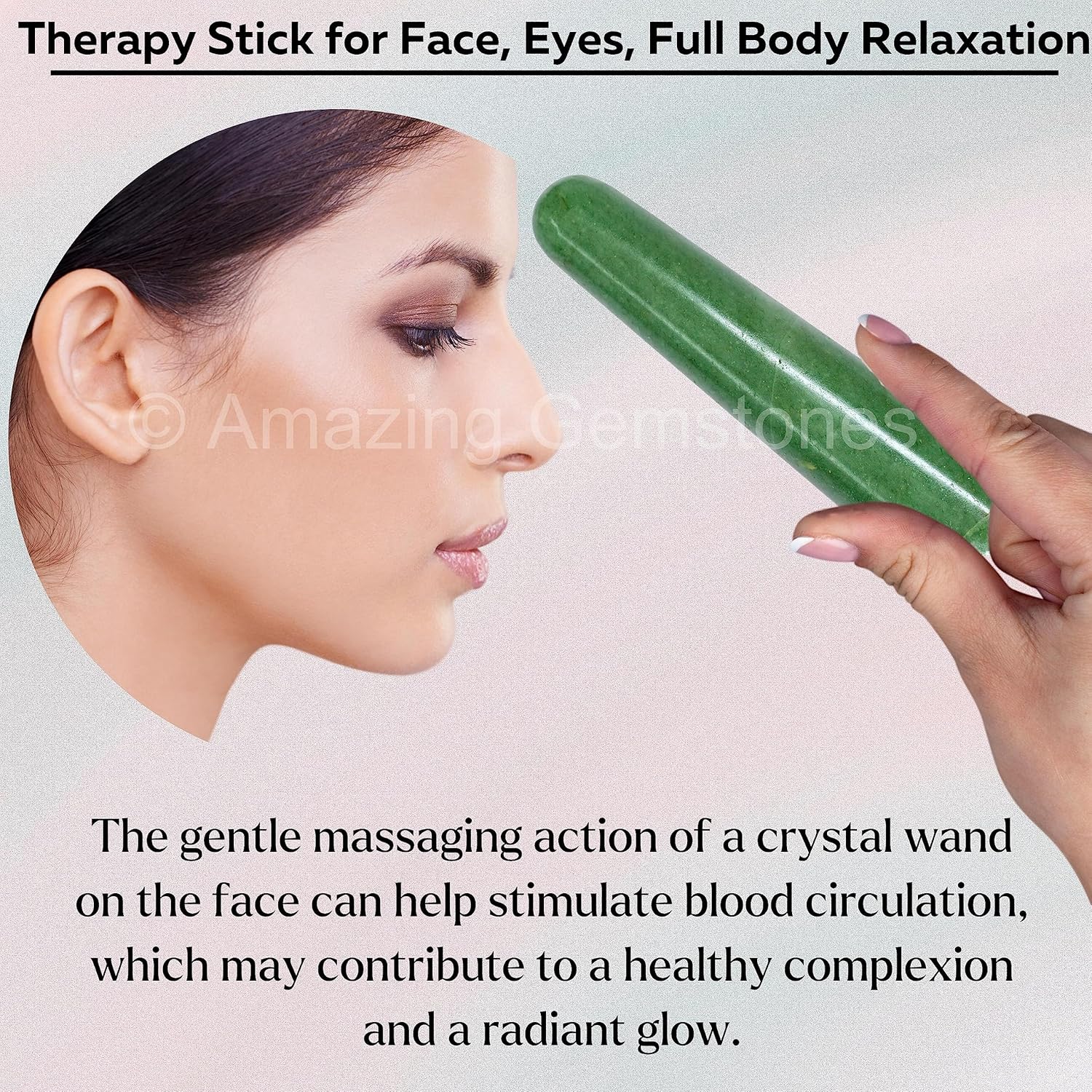 Amazing Gemstone Green Aventurine Crystal Wand Massage Stick - Pelvic Wand Gua Sha for Adults - Crystals and Healing Stones Massage Wands for Adults Gifts (Smooth)