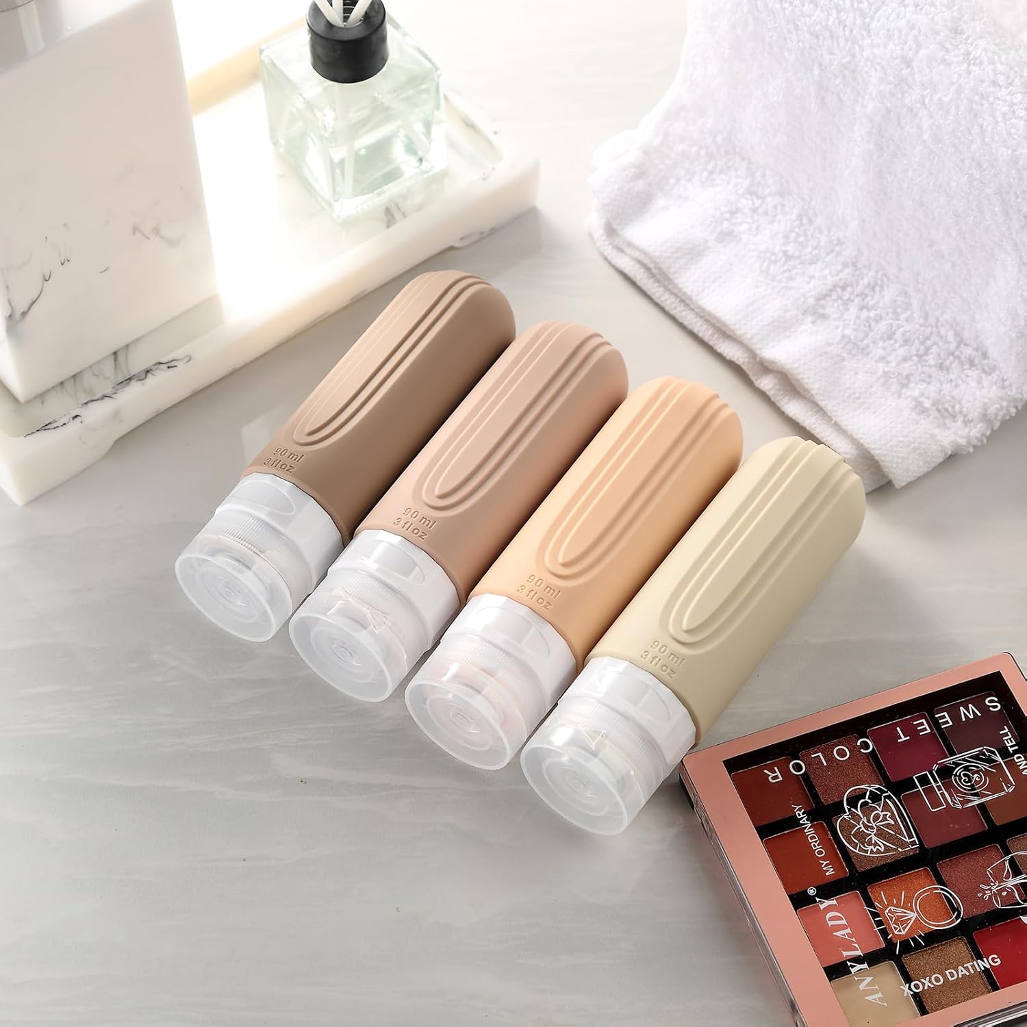 Travel Bottles for Toiletries, Tsa Approved 3oz Travel Size Containers BPA Free Leak Proof Refillable Liquid Silicone Squeezable Travel Accessories for Shampoo Conditioner Lotion (4 Pack)