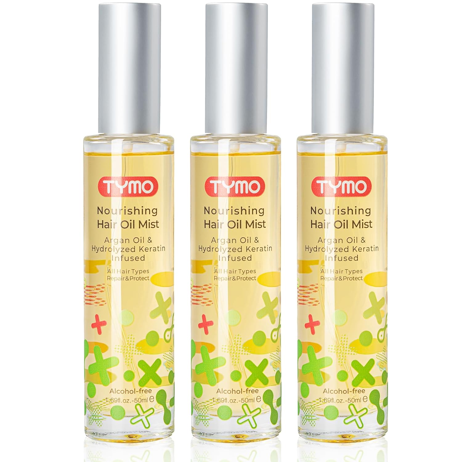 TYMO Argan Hair Oil Spray - Hydrating Veganic Natural 6 Blend Oil for Frizzy & Dry Hair, Organic Pure Formula, Daily Use Hair Treatment, Smooth Damaged Ends, Olive Oil & Vitamin E Infused, Pack of 3