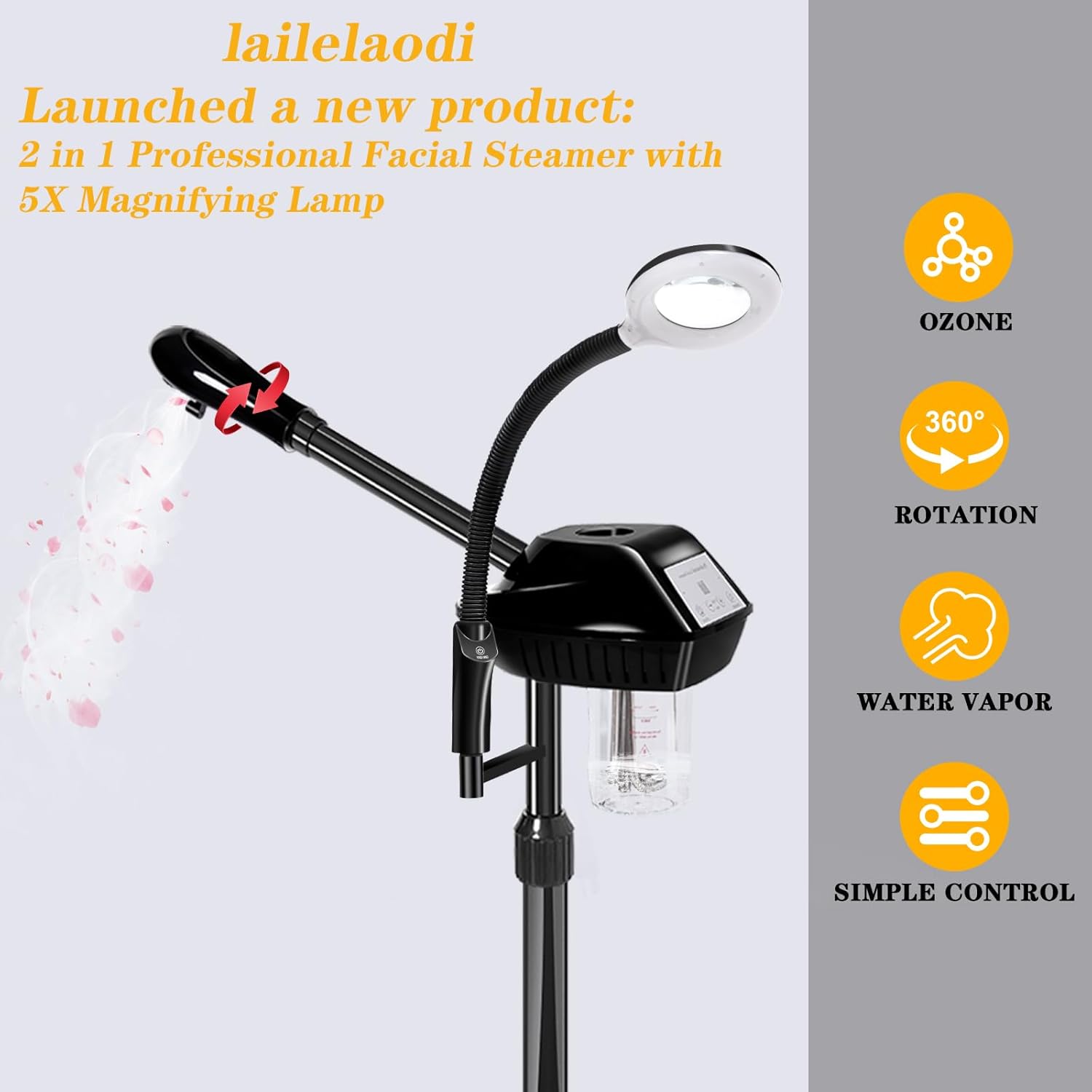 Professional Facial Steamer, 2 in 1 Ozone Facial Steamer with 5X Magnifying Lamp, face Steamer Professional, Suitable for Home Use or Beauty Spa Deep Cleansing and Hydration