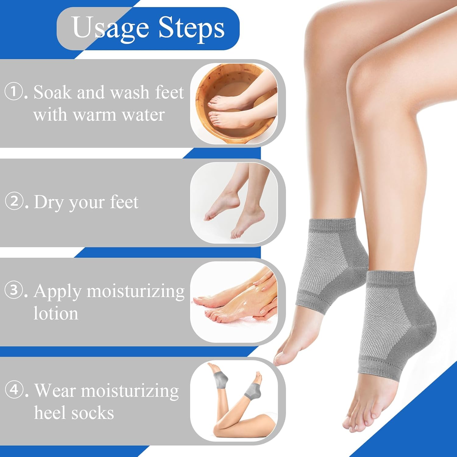 - 【Package Contains】: The package included 12 pairs of heel socks for dry cracked feet. It can wear it at home, office, playing sports or shopping, it is fits many shoes like sneakers, flats, boots, leather shoes, etc.