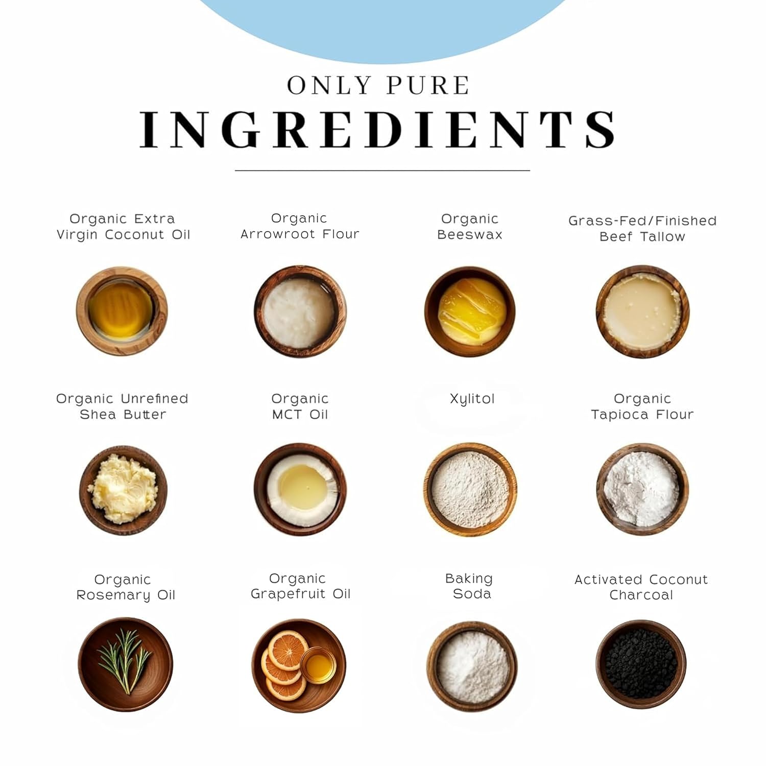 - Powered by Nature: Made with extra virgin coconut oil, beeswax, magnesium hydroxide, arrowroot flour, and grass-fed beef tallow, this stick offers a simple and nourishing option for sensitive skin.
