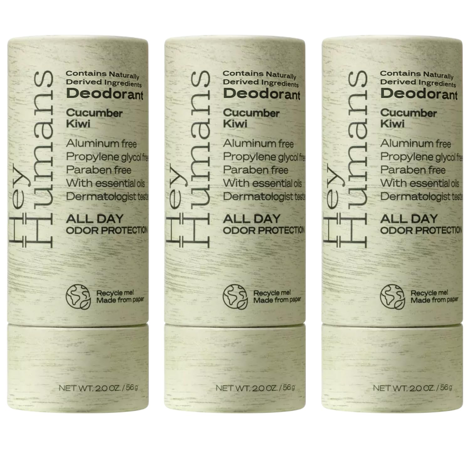 Hey Humans Deodorant, Aluminum Free Deodorant for Women and Men, Contains Naturally Derived Ingredients, All Day Odor Control, Refreshing Essential Oils, Earth Friendly Package, Cucumber Kiwi