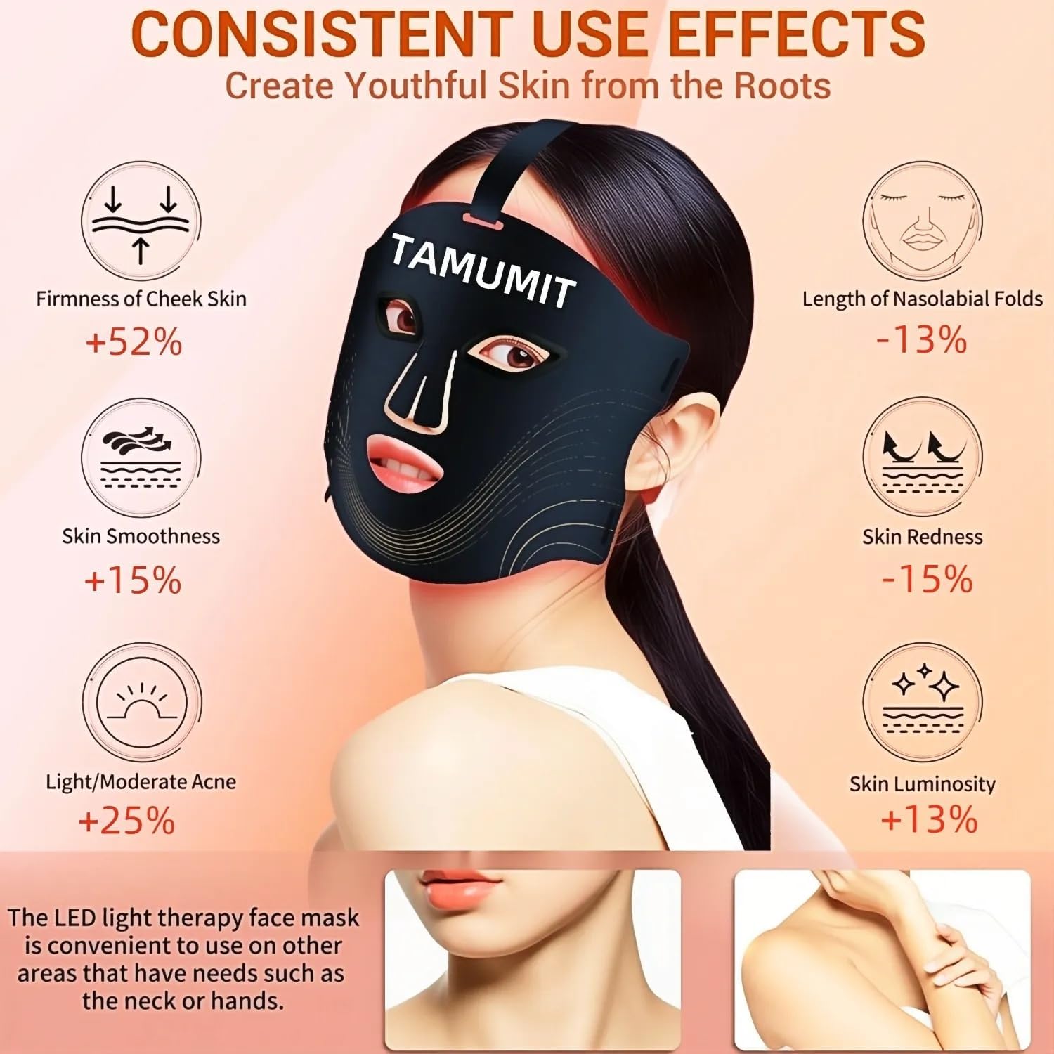 - Portability for On-the-Go Use: Worried about not being able to use your LED mask when you're away from home? Don't be! Our red facial mask is portable and can be used anywhere,Suitable for both men and women