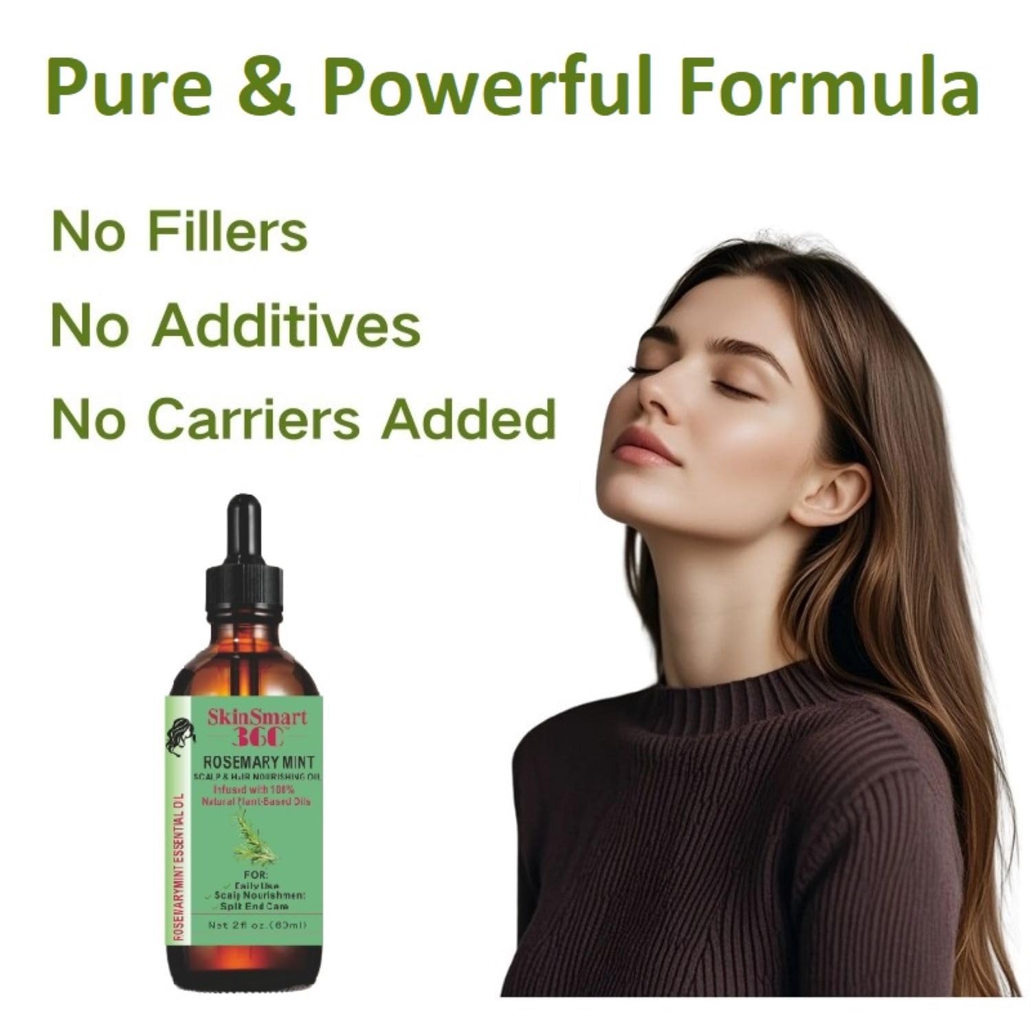 SkinSmart 360® Rosemary Mint Hair Growth Oil & Scalp Care – 100% Natural, Plant-Based, Non-Greasy Formula for Hair, Eyebrows & Lashes – 60ml, Pack of 1