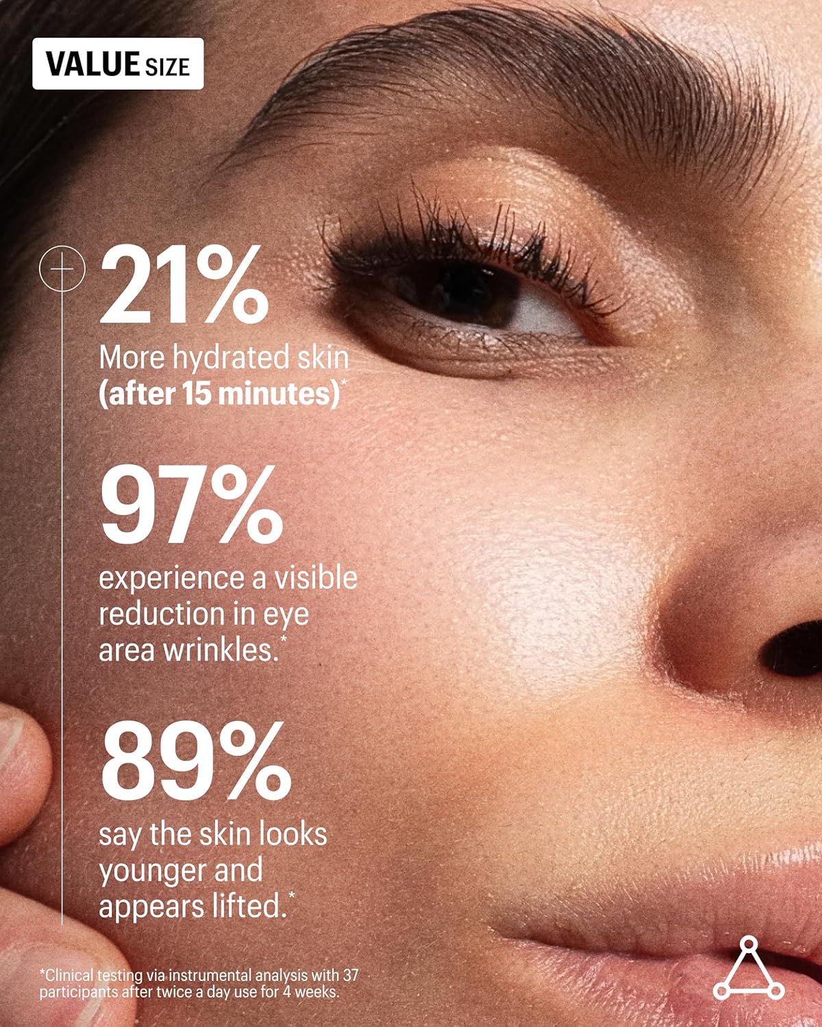 - DERMATOLOGIST VALIDATED PROVEN RESULTS. Instantly: 100% of participants witness instant skin hydration*, with +21% more hydrated skin (after 15 minutes.) After 8 weeks: 97% experience a visible reduction in eye area wrinkles, with: -24% visibly diminished crow's feet.