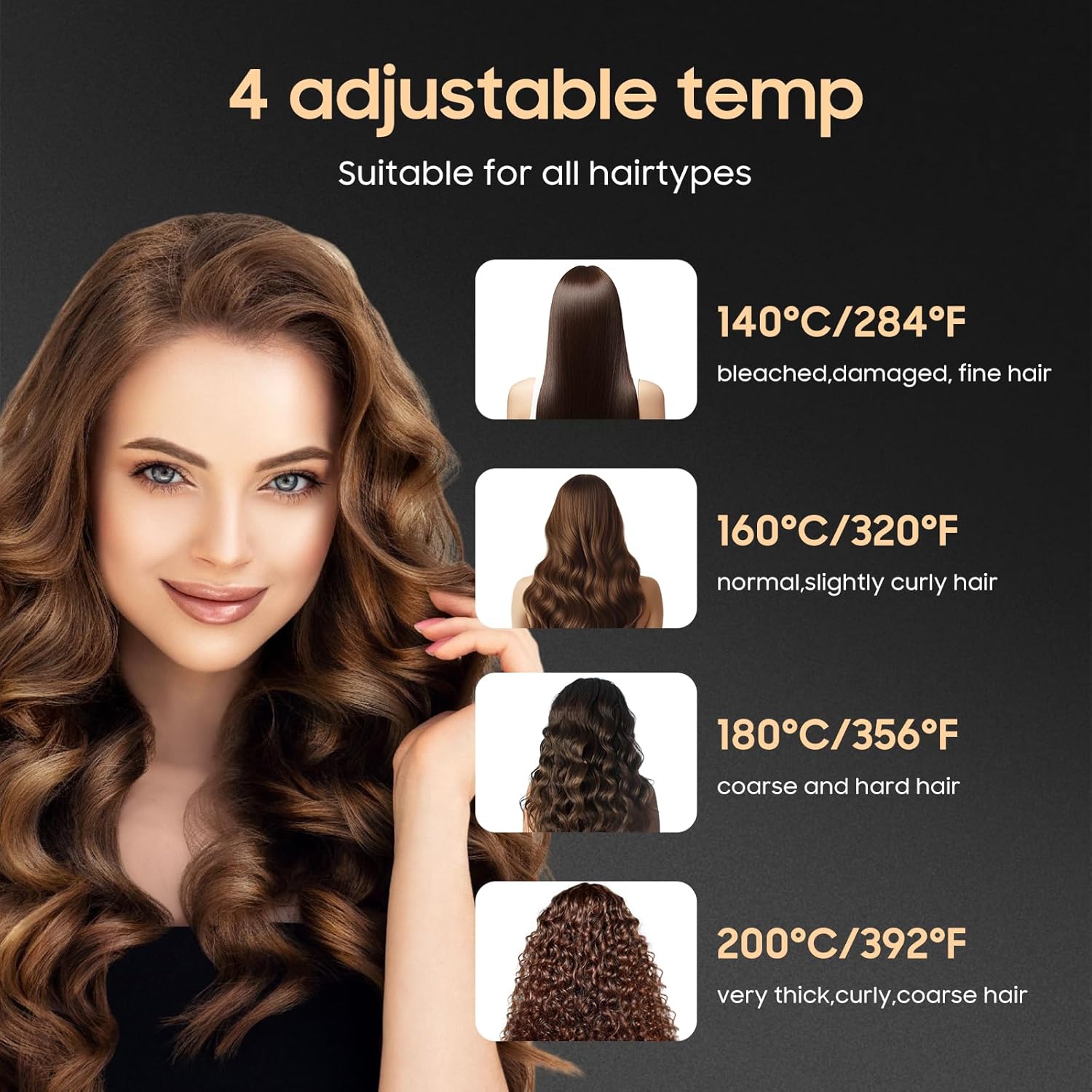 - Fast Heating &4 Adjustable Temperature Control:This cordless hair straightener heats up to 392°F in just 20 seconds, offering quick styling for busy mornings. With 4 adjustable temperature settings (284°F-392°F), it caters to all hair types, from fine to thick, ensuring salon-quality results without heat damage.