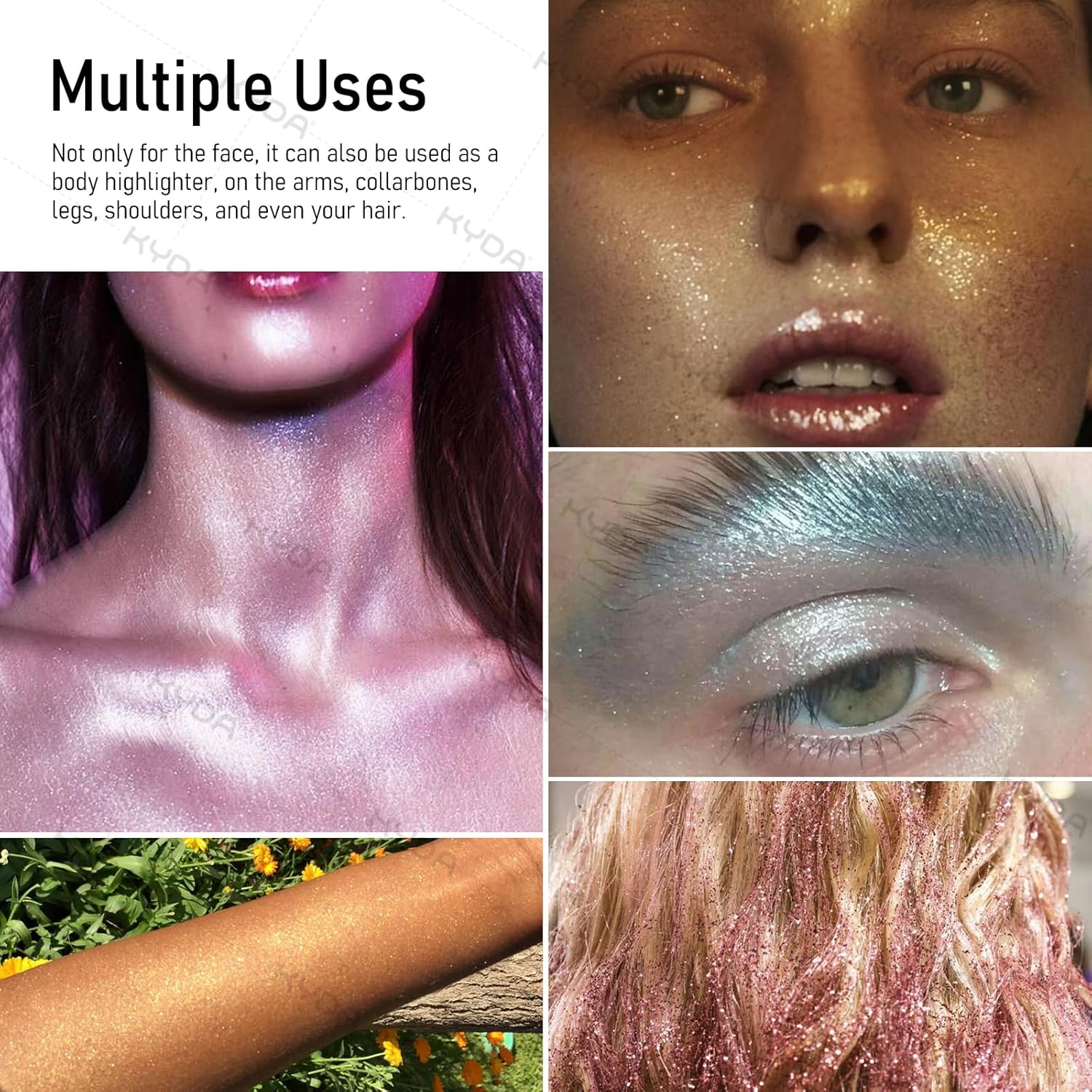 - 【Multiple Uses】Not only for the face, it can also be used as a body highlighter, on the arms, collarbones, legs, shoulders, and even your hair.